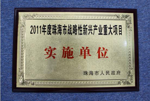 2011年12月5日,在珠海市委、市政府召开的2011年科技奖励大会暨加快发展战略性新兴产业大会上,欧比特公司被授予2011年度珠海市战略性新兴产业重大项目实施单位。