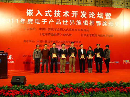 中国计算机学会嵌入式系统专业委员会(微机专业委员会)、电子产品世界杂志社、北京大学软件与微电子学院联合举办2011年嵌入式技术开发论坛暨2011年度电子产品世界编辑推荐奖颁奖典礼;于2011年12月22日在北京大学英杰交流中心阳光大厅隆重举办。 欧比特公司《OBT1553...
